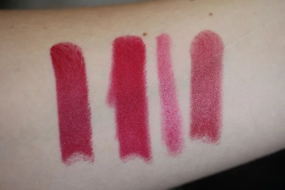 The lineup: Rouge d'Armani 400 (left), Pink Fuchsia (centre) and NARS' Flamenco (right)