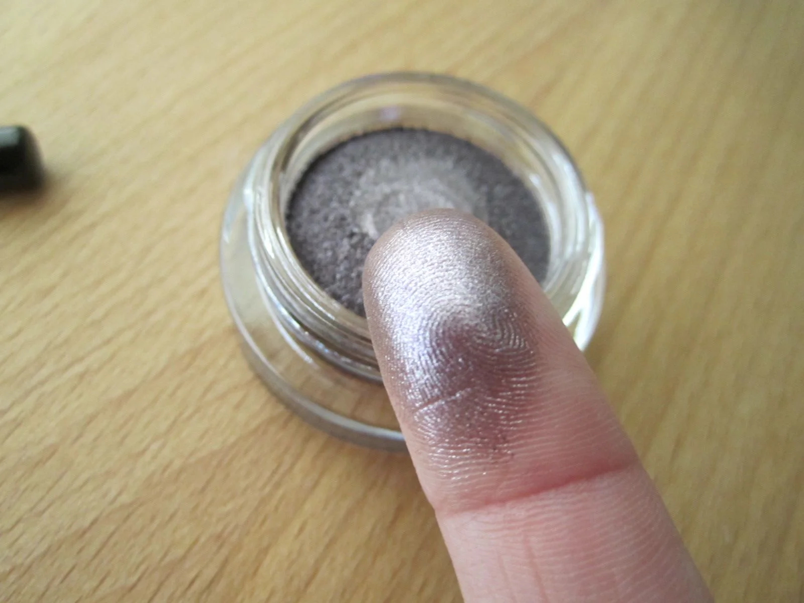 This lovely little glass jar contains a bouncy/springy-type eye shadow and is slightly difficult to apply. When I swatched Illusoire I noticed the product began to ball up and turned into a little clump on the tip of my finger; not something you want to have glom onto your lid. In order to get the best consistency and ideal application, I found it's best if you gently rub the contents until it's warmed to the point where you can have enough product on your finger. Then, I tap and dab my eye lid, first concentrating there and then working my way out. As I work my way out, naturally, I have less on my finger which, in turn, creates the smoke.