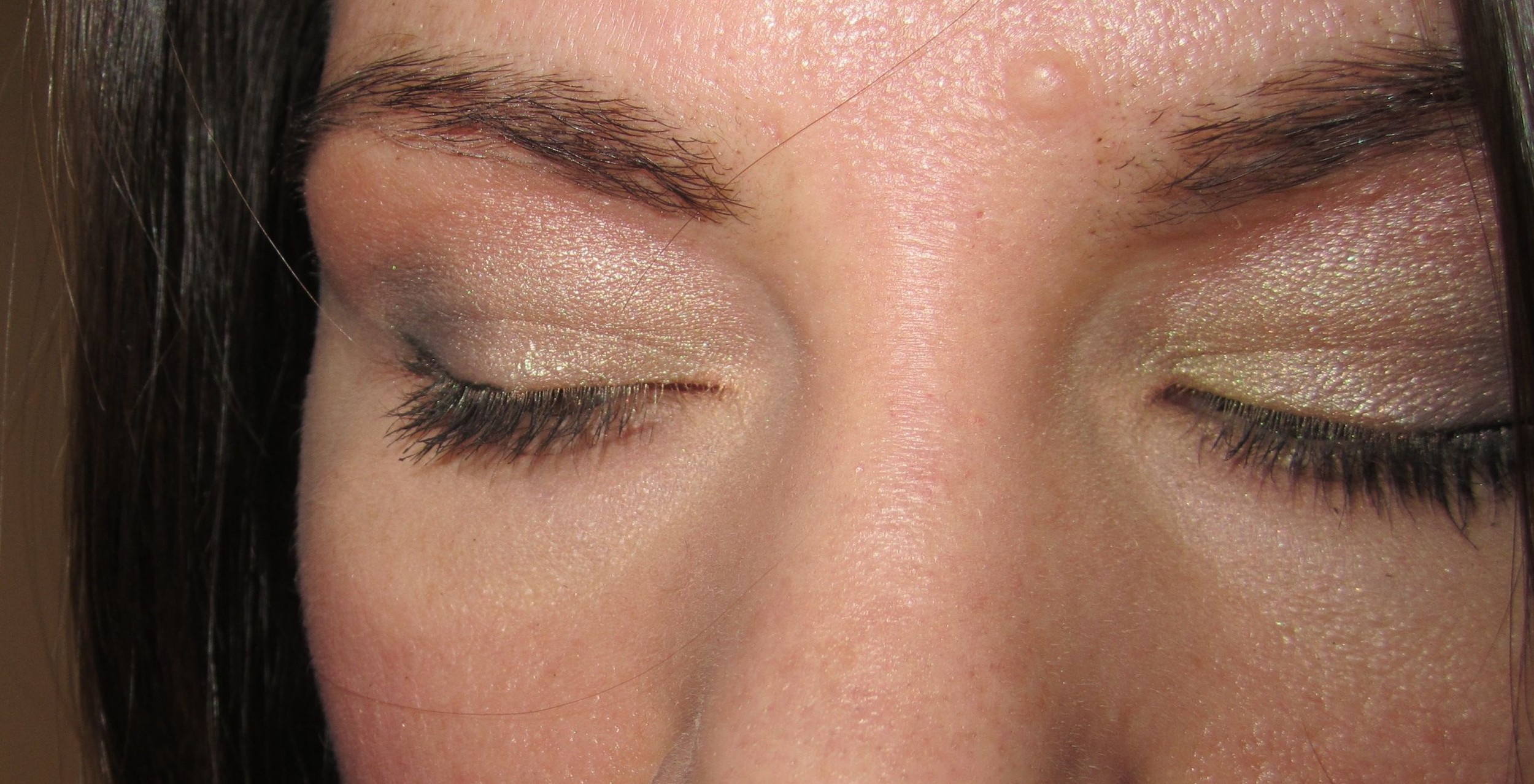 In the look seen below I used four out of the six colours. For my eyes I started with Inglot shade 397 (peachy cream) and applied it all over. Then I blended Spark of Life (light mint green) on my lower lid, dabbed a hint of Elitist (gold) on the inner half of my lower lid and added a bit of smokiness with the help of Polymorph (shimmery gray). But where was the fourth colour used? Ah, my lips! I layered Divinity (light pink) over Revlon's ColorBurst Lip Butter in Sweet Tart.