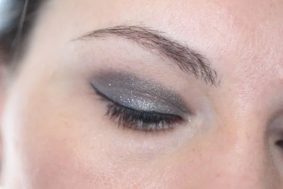 I created the look above by applying Chanel's Apparition on the outer half of my eye lid and then I blended Lancome's Electrifying Sparkle into Apparition. Originally I intended to create a gradient of hues, but I like how these opposing colours melded into one. In order to keep with the moody theme, I lined my eyes with NARS' Koala and finished with a coat of black mascara. Creasing hasn't been an issue thus far, but I've only been wearing this look for an hour or two; hopefully my trusty NARS' Smudge Proof Eyeshadow Base will help to keep things in place.