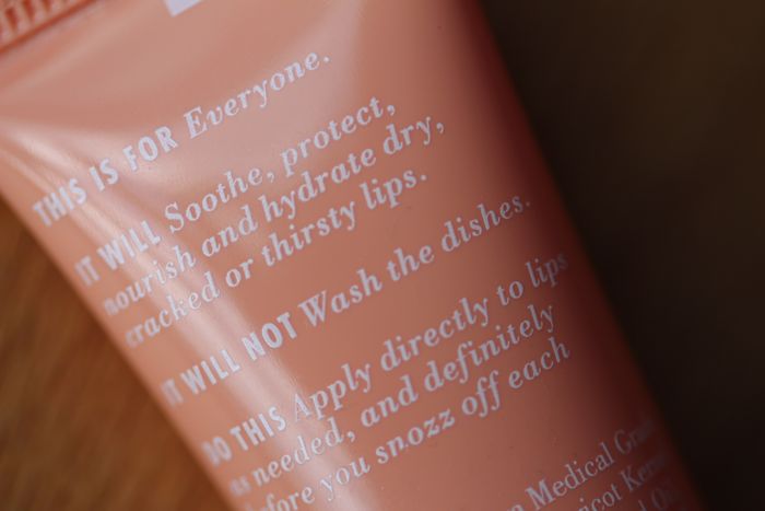 The peach hued packaging is unpresumptuous and the commentary sprinkled about the tube is very Zoe.