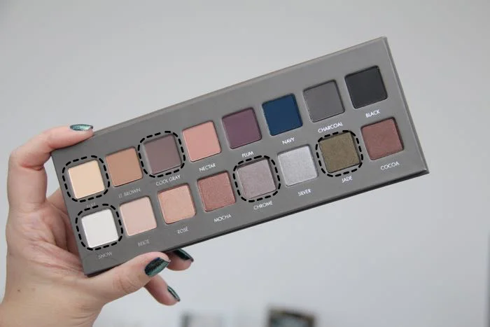 Pro Palette 2 swatches from left to right starting on the top row: Buff, Light Brown, Cool Gray, Plum, Navy, Charcoal, Black, Snow, Beige, Rose, Mocha, Chrome, Silver, Jade and Cocoa.