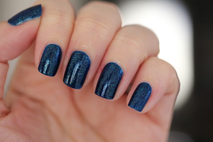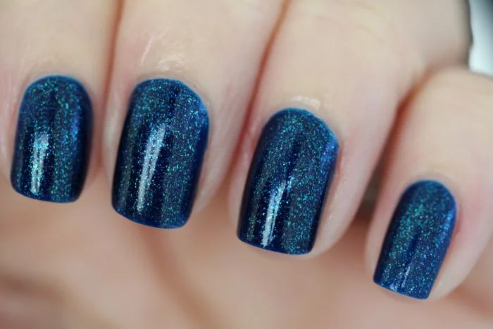 Lead Singer, Me features a creamy navy blue base with cerulean blue and greenish flakies. It's a striking shade that helped to cap off a fairly chilly Melbourne winter. Seven days of minor tip wear places Lead Singer, Me in the 'gotta have this polish, right now' category.