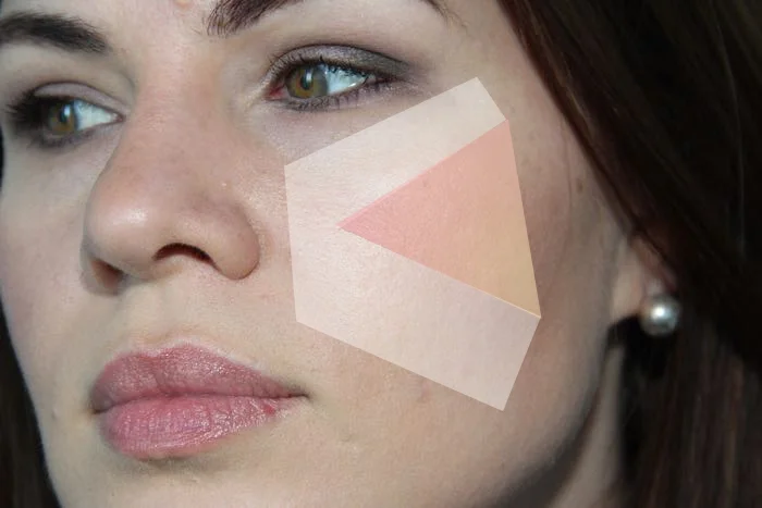 So, what's up with the upside down triangle? The inner half works to conceal, whereas the outer half lifts and highlights. I went with an equilateral triangle as my cheeks are fairly defined, but feel free to make your triangle slightly more acute to accentuate your cheekbones further. That said, I wouldn't bring the apex of the triangle down as far as the end of your nose.
