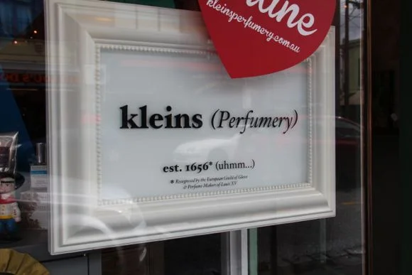/I often don't feel like I get transported to another place or time when I enter most shops. It's safe to say Kleins Perfumery, located in Fitzroy, isn't just any store. Yes, it's sandwiched between two Souvlaki shops, but that's besides the point. Whenever I enter Kleins I think of myself as Alice in Wonderland unwittingly stumbling upon delectable delights.