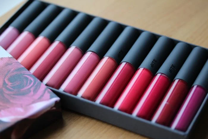 Bite Beauty's Deconstructed Rose Lip Gloss Library* contains 12 shades (.05 ounces/tube) -- these were specifically picked for their delicacy, likeness and also for the emotions one feels when given a rose or bouquet of roses.