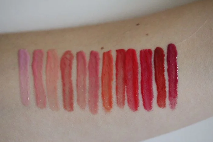 Swatches of the Deconstructed Rose Lip Gloss Library (without flash)