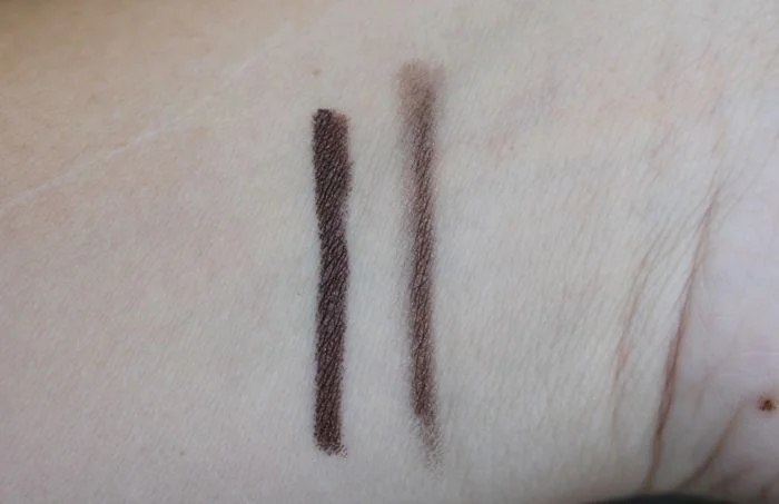 Swatches of Ro(Cocoa) untouched (right) and blended (left). It's budge, smudge-proof and I had a heck of a time trying to wash these swatches off!