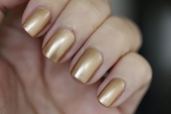 Hello Darling's Trumped isn't without its luster, shine and golden sparkle. Trumped is opaque after two coats, however I did notice brush strokes in the finish. With that said, this is a common occurrence in most metallic formulas. The only thing I cannot comment on is wear, because I had to remove my polish prior to Erin's Nail Art Class. From wearing other Hello Darling shades, I can attest their formula lasts at least seven days.