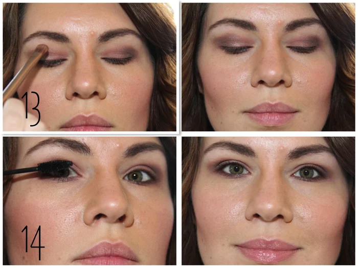 • Finally, paint on a healthy helping of mascara and be sure to clean up eyeshadow spillage from the under eye area.